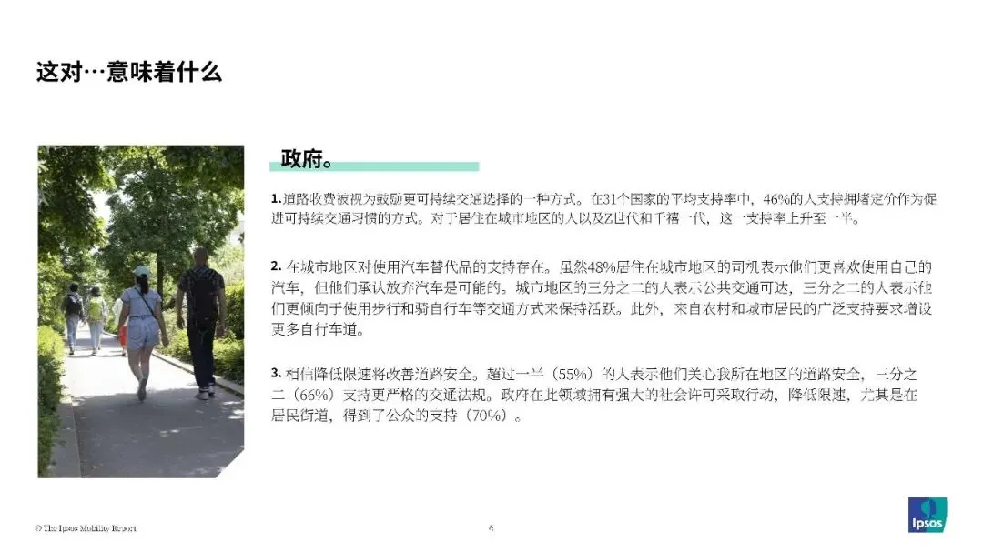 对政府:优先补齐农村公共交通短板,推进住宅街道降速、自行车道等安全设施,用政策引导绿色与电动出行。