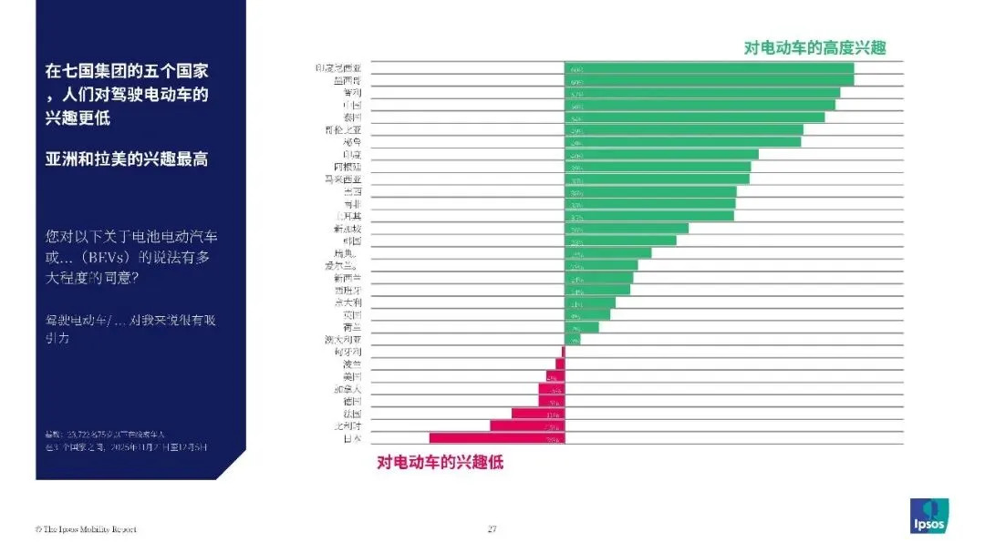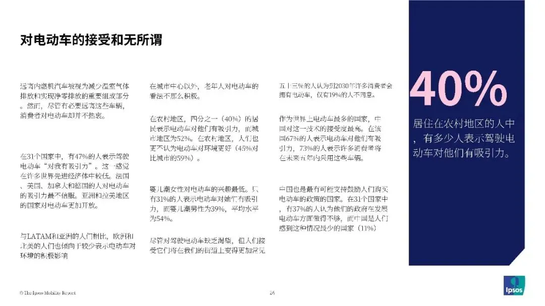 全球仅 47% 认为电动车有吸引力,53% 预计 2030 年电动车将普及。