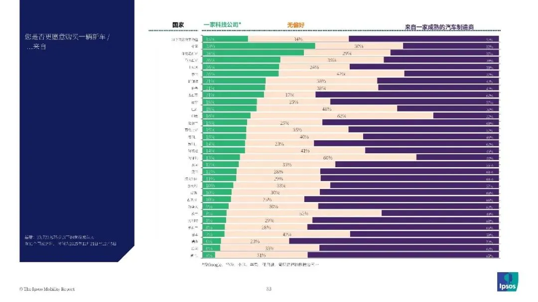 全球平均:41% 抵制中国车企、38% 抵制印度车企、24% 抵制美国车企。