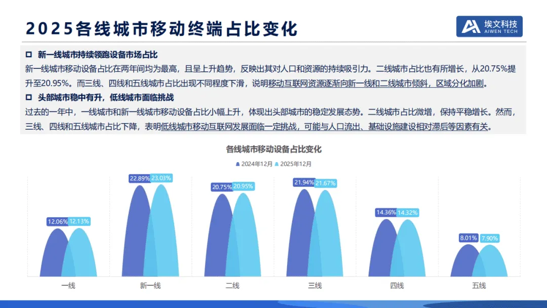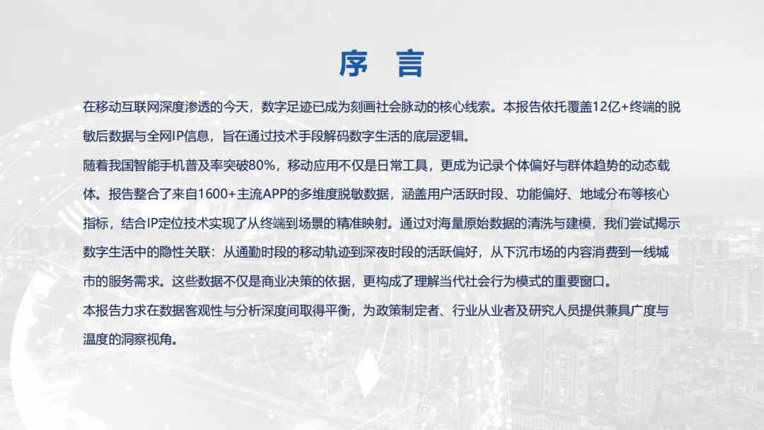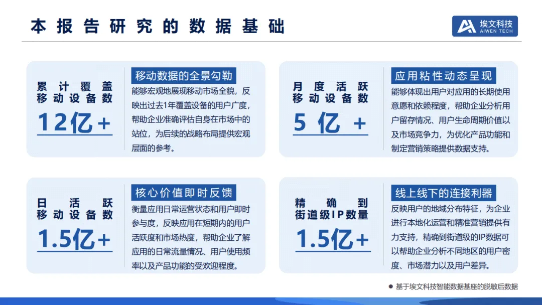 埃文科技发布的2025移动智能终端应用叠加IP地址信息用户网络洞察报告,基于12亿+脱敏移动设备与全网IP数据,从区域发展、终端市场、应用生态、用户特征四大维度,全景呈现国内移动互联网发展态势。