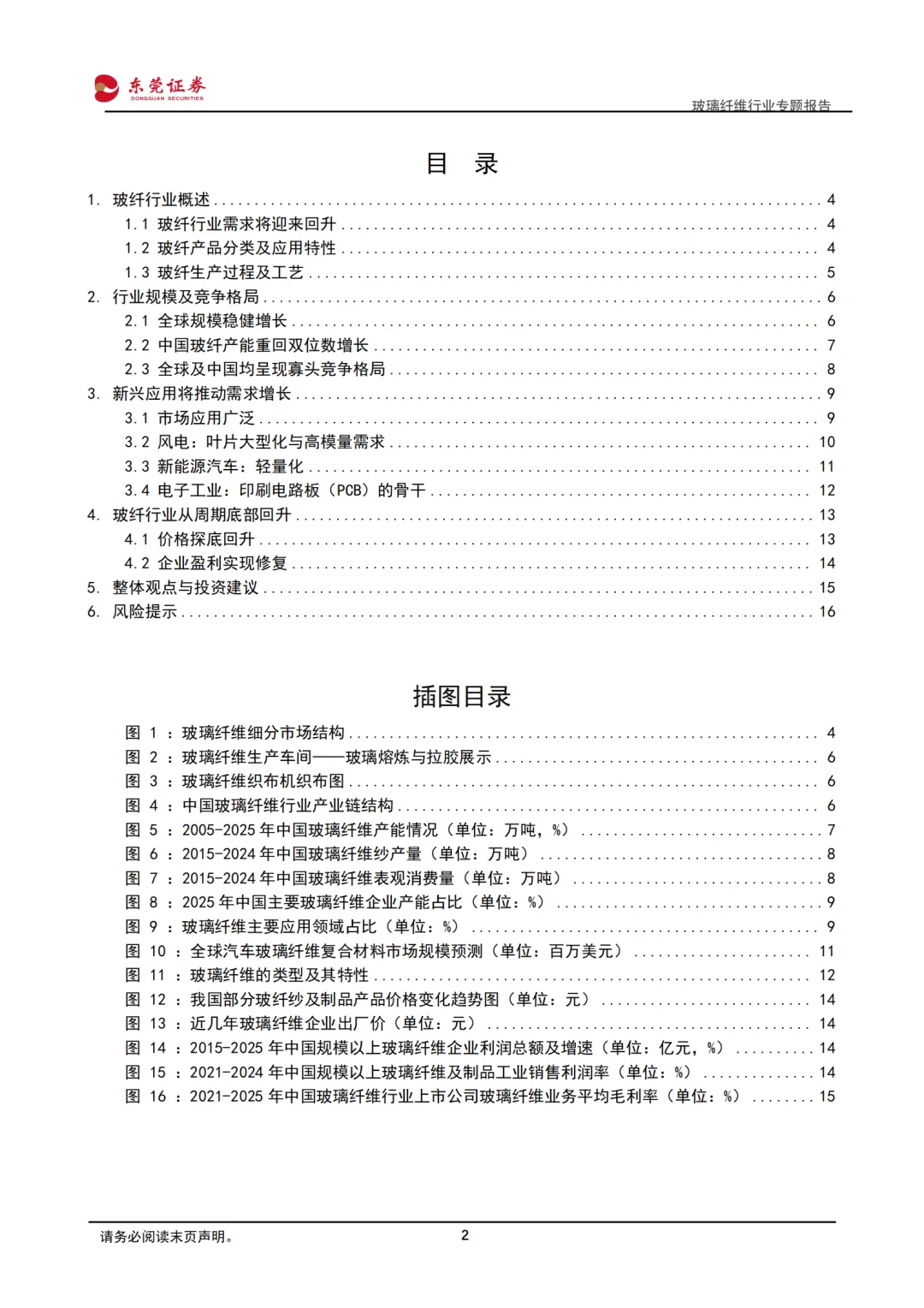 玻纤行业从周期底部回升。2023年玻纤价格跌至历史低谷,多数企业盈利承压。进入2024年,随着行业协同性增强及落后产能的出清,供需关系开始改善。头部企业也深刻认识到“内卷式”竞争的危害,主动避免价格战,并通过提价修复盈利。与此同时,结构性需求的强劲增长为涨价提供了实质性支撑。行业正经历周期底部回升及结构性增长共振下带来的价格向上、景气度复苏及企业盈利修复。
