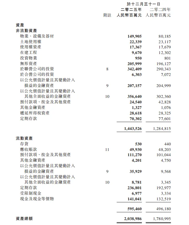 对联合营公司的投资+金融资产共9572亿,其中756亿是理财投资,即投资资产为8816亿,2024年是7840亿,增加了将近1000亿。