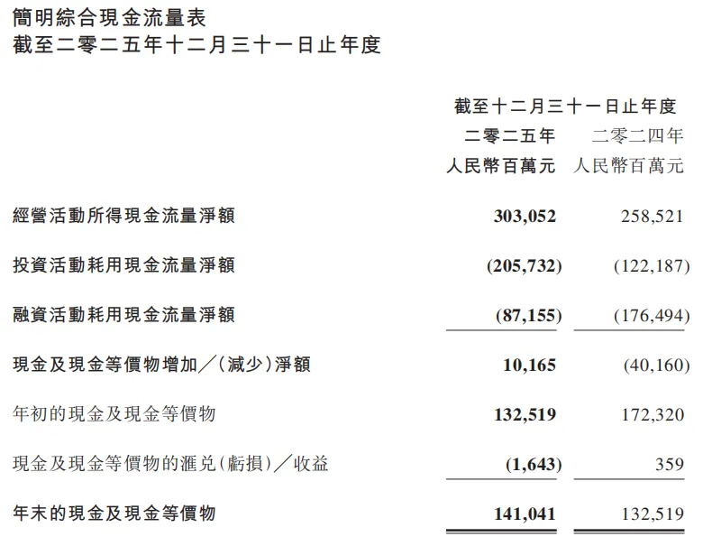 融资活动现金流净额-871亿,2024年是-1765亿,2025年全年回购800亿,相比2024年1120亿减少了320亿,因为2025年腾讯股价上涨,公司减少回购,另一方面是借款变多、还款变少。