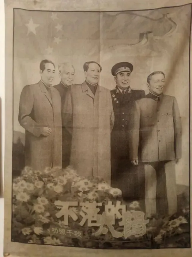 1,当时党中央委派陈云与邓小平视察社会经济回来后,召开经济政策讨论,陈云提议农村经济分田到户建议,遭到了右倾思想批评,为了章显社会主义核心,反对资本主义复燃,党中央特意授权上海都锦生丝质厂以当时国家研制的新面料的确良结合丝质工艺,限量制作这面特殊政治宣传品。五星红旗代表新中国,长城代表民族;毛、周、刘、朱、邓代表党中央;向日葵代表繁荣昌盛;铭文代表新中国党中央以坚定社会主义核心才是国家永久的治国强国方针。
