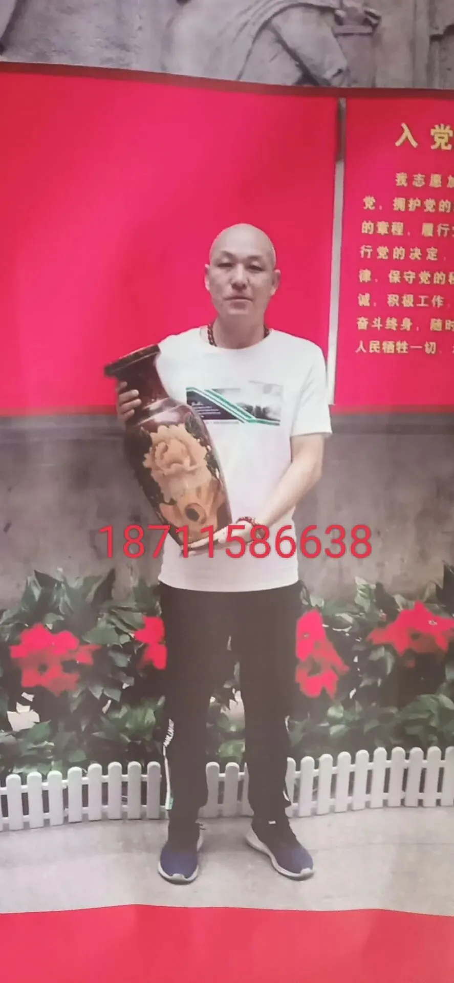 2,此件特级红色文献系中国收藏家王跃夫家传之宝:湖南省白沙矿务局马田煤矿工程师伍秉枫先生于1963年购买,在文化大革命暴风来临中,刘少奇与邓小平遭难,随之破四旧风潮。在当时政治风暴下,伍秉枫先生把此件从堂屋墙上取下,收藏于清早期珐琅彩棒槌瓶中,然后用旧衣服包裹再用牛皮纸包裹好,在黑夜中与其妻罗小芳小心怱忙抱着向山中走去,在惧怕中碰碰撞撞将花瓶埋入了深山中。伍秉枫先生于第二年煤矿瓦斯爆炸而牺牲,因生活所迫其妻再婚于当地一名小学教师。罗小芳小儿子(藏家王跃夫)于1997年痴迷于历史文化遗产收藏,见儿子赶集摆摊走村串户的收购老物件才想起30年前自己与前夫埋藏之事,便告知小儿并带其将东西取出来,虽经过精心包裹与埋藏,但还是由于当时碰撞造成珐琅彩瓶口沿撞破,辛好包裹严实而没有将碎片遗失,经过王跃夫精心沾贴复原,虽因埋藏时间久远造成釉面多处剥离脱落,但还是将文化遗产保存了下来,至今才得以在中国收藏家王跃夫手中向世人面世。