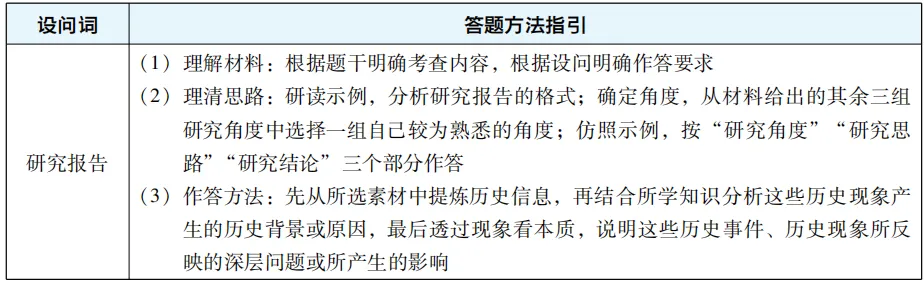 【解题思路】第(1)小题要求撰写研究报告,是开放性试题,而且已给出答题的示例。首先要从材料中选择一个研究角度(一定不能再选示例的角度),然后参考示例的表达方式和思路,把素材信息和所学知识联系起来进行论述,最后明确写出研究结论即可。第(2)小题则根据研究的内容并结合所学知识,再另外提供两个研究角度即可。