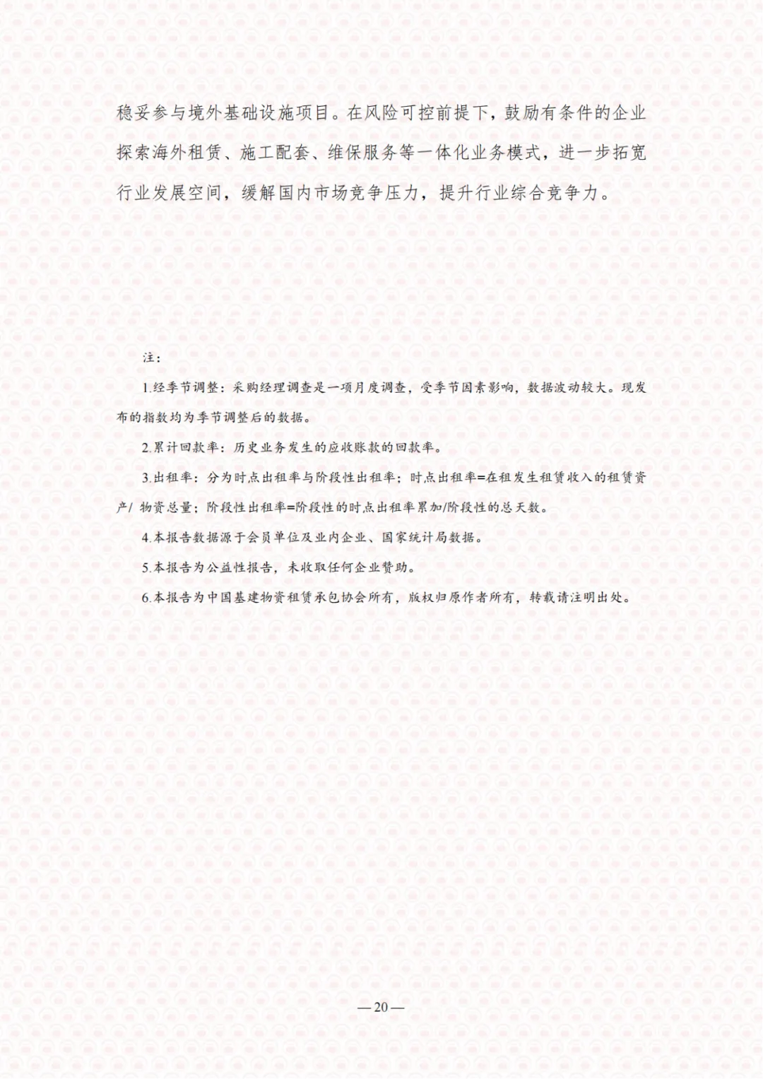 6.本报告为中国基建物资租赁承包协会所有,版权归原作者所有,转载请注明出处。