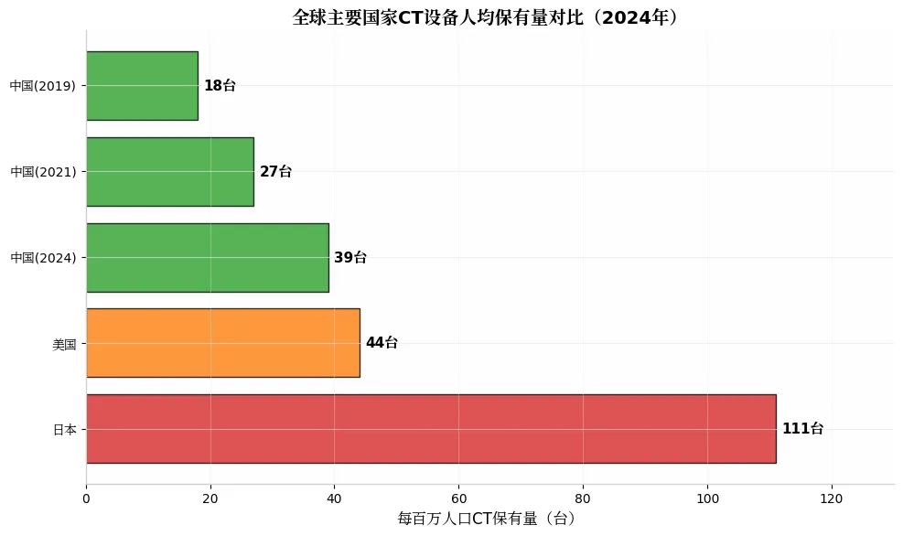 关键发现:中国CT保有量仅为日本的35%,但检查量却是日本的2.8倍,单台设备年均检查量达5328人次,是日本的3.2倍。这表明中国CT使用存在严重的过度使用而非供给过剩问题。