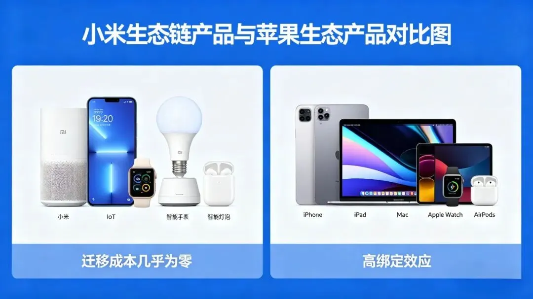 小米汽车从零到1061亿营收,只用了短短几年,这份速度令人惊叹,但也让资本市场陷入了担忧。汽车是典型的重资产行业,每多卖一辆车,就意味着要投入更多资金在产能建设、供应链采购、门店扩张上。2025年,小米汽车经营开支达249亿元,同比增长87.7%,销售推广费用从2024年的254亿涨到332亿,且2026年目标交付55万辆,意味着还要继续砸钱扩产、铺渠道。这直接导致小米的资产负债表越来越重,从一家被寄予厚望的“科技公司”,逐渐向丰田这样的“硬件制造公司”靠拢。而资本市场对科技公司和制造公司的估值逻辑,有着天壤之别——科技公司靠“想象力”溢价,制造公司靠“规模”估值,两者的差距,足以让市值腰斩。更关键的是,小米汽车的盈利并不稳定:2025年每辆汽车毛利约6.3万元,但经营利润仅约6081元,大部分利润都被研发、销售、行政费用吞噬,短期内很难优化费用率,也难以贡献巨额净利润。第二张骨牌:低价生态,留不住用户,也锁不住价值