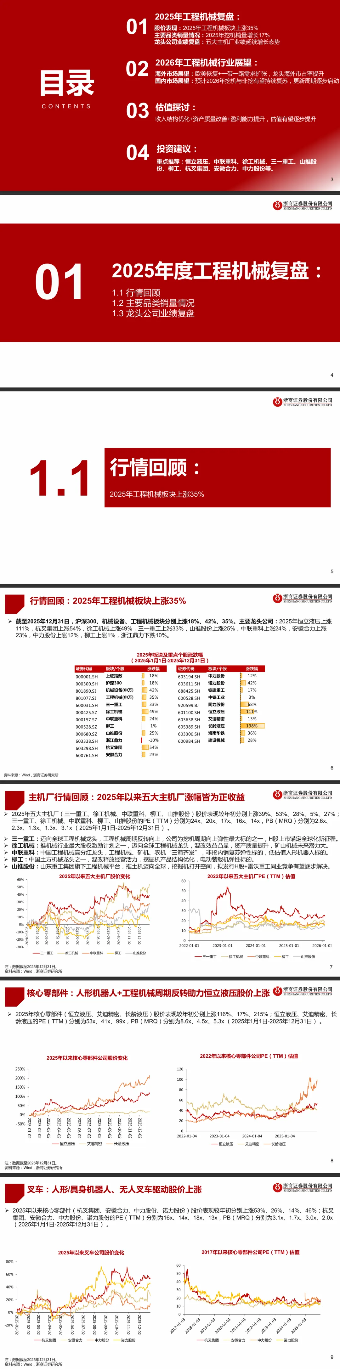 摘要:2026年工程机械车辆行业迎来海外市占率提升与国内周期反转的双重机遇,电动化与具身智能无人化成为国内细分板块的核心增长动力,搅拌车电动化已率先带动混凝土机械需求复苏。海外市场方面,2025年一带一路区域工程机械出口同比增长20%,占总出口额66%,欧美降息带动海外需求复苏,国内龙头徐工、三一、中联2024年全球市占率合计12.4%,仍有较大提升空间。国内挖机8-10年更新周期启动,农林市政、水利矿山拉动细分需求,雅下水电、新藏铁路等项目支撑内需。本报告梳理行业年度投资策略,为投资者、工程机械从业者提供决策参考。