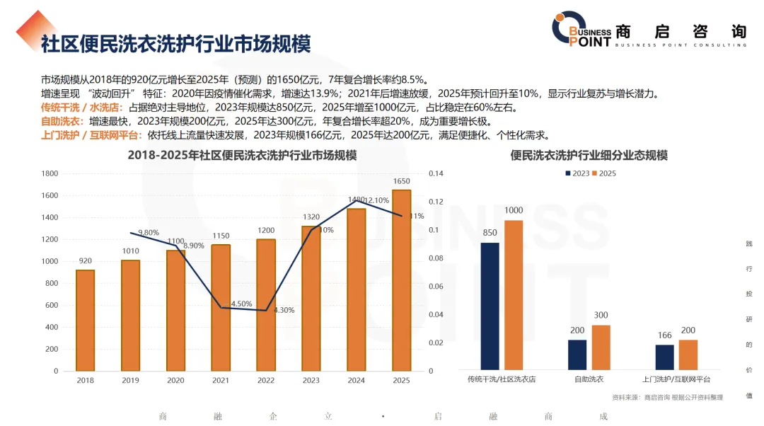 自助洗衣:增速最快,2023年规模200亿元,2025年达300亿元,年复合增长率超20%,成为重要增长极。