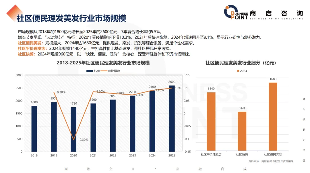 社区平价理发店:2024年规模1440亿元,主打高性价比基础理发,是社区居民日常选择。