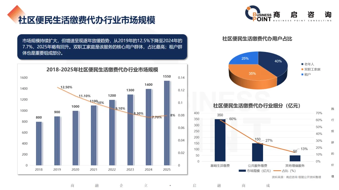 物业 / 便利店代收占比15%,依托社区物业、连锁便利店场景,提供便捷代收服务,是补充渠道。
