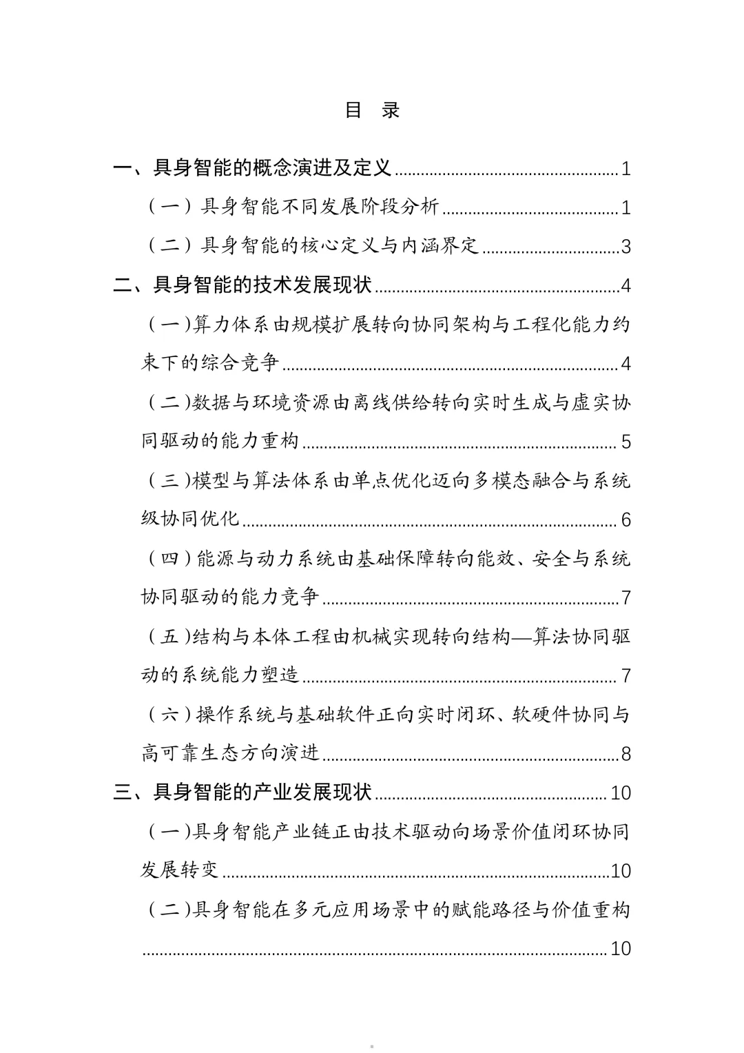 报告系统性地梳理了具身智能(Embodied AI)从概念、技术、产业到全球格局与未来路径的全景,是一份具有前瞻性和战略指导意义的重要文献。