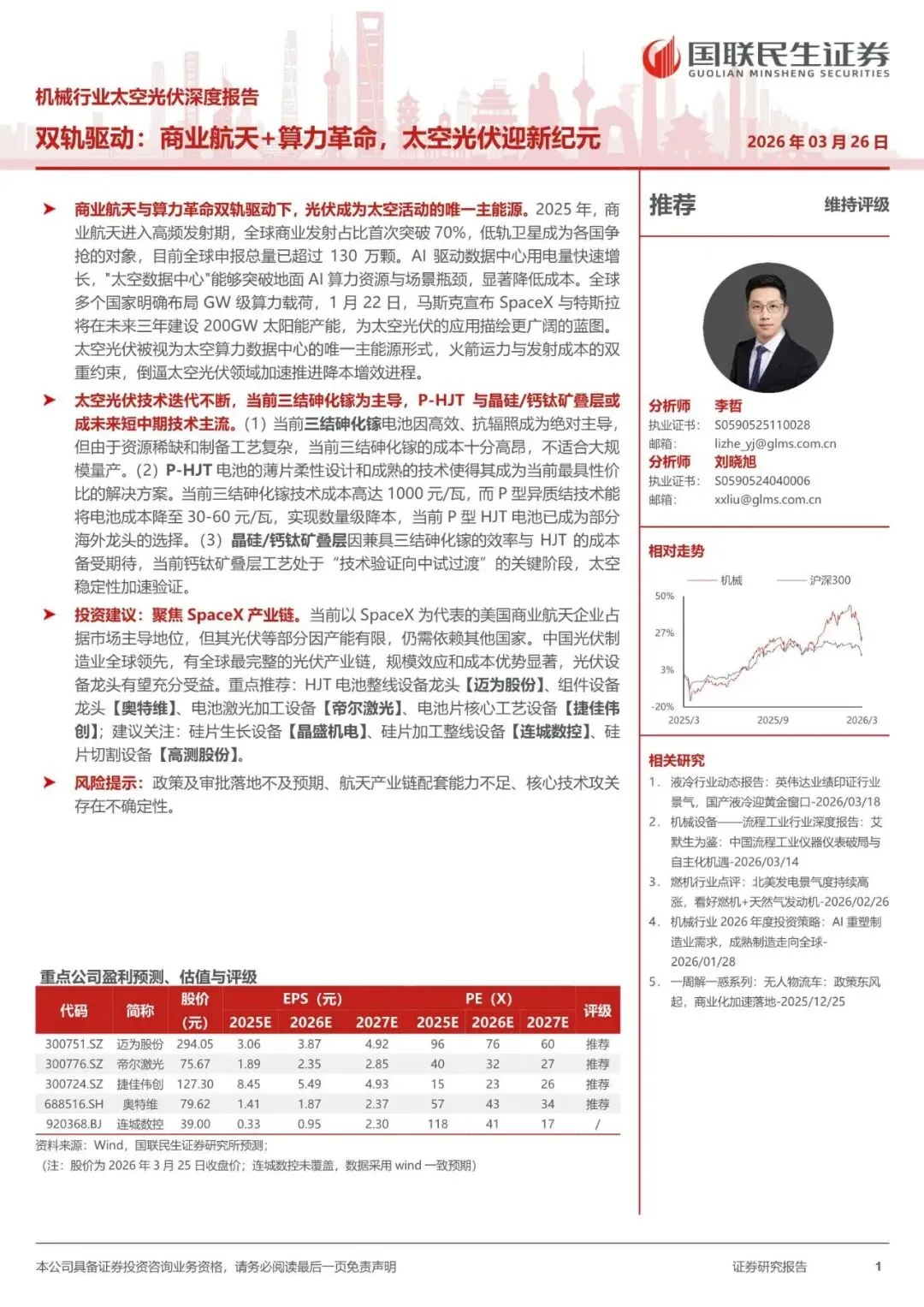 机械行业太空光伏深度报告-双轨驱动:商业航天+算力革命,太空光伏迎新纪元-260326-国联民生证券-39页