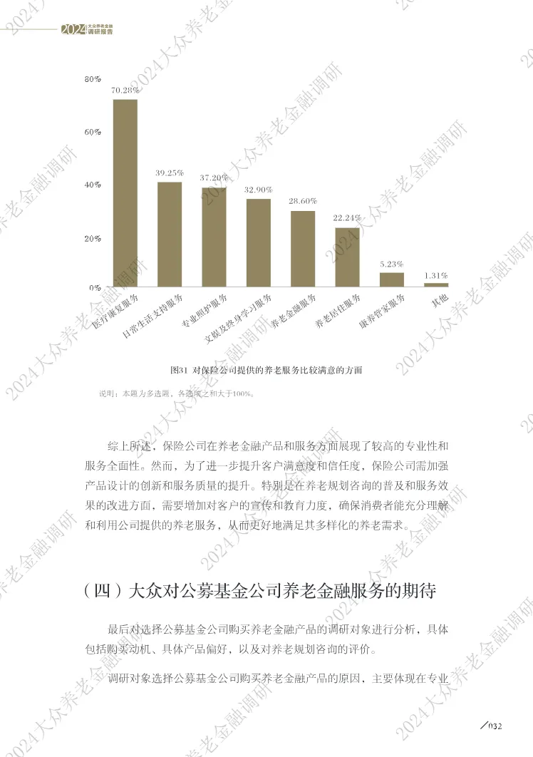 • 保险公司在专业性与服务整合上获高认可:56.82%的用户认为保险公司更专业,48.97%认可其服务全面性,尤其在医疗康复服务满意度达70.28%,验证了“保险+康养”模式的市场接受度。
