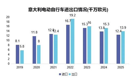 2025年意大利自行车零部件出口额为5.5亿欧元,同比增长14.5%