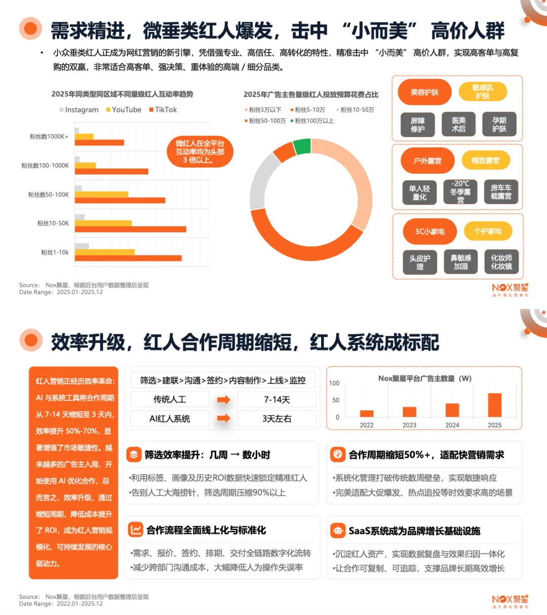 广告主在网红营销上预算持续增加,从2022年的20%+,递增到2025年的60%+。