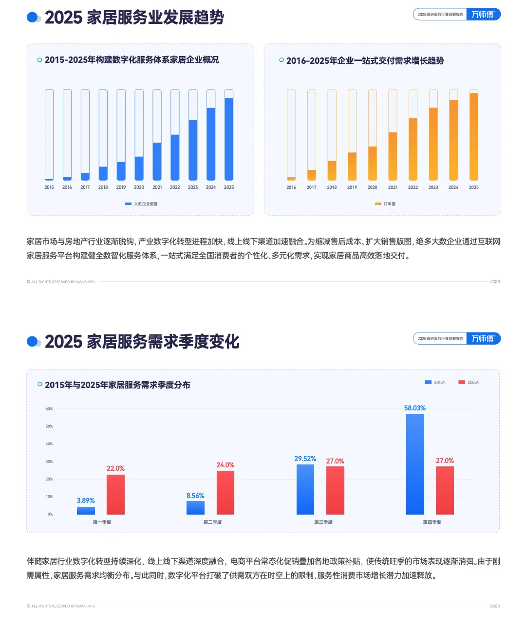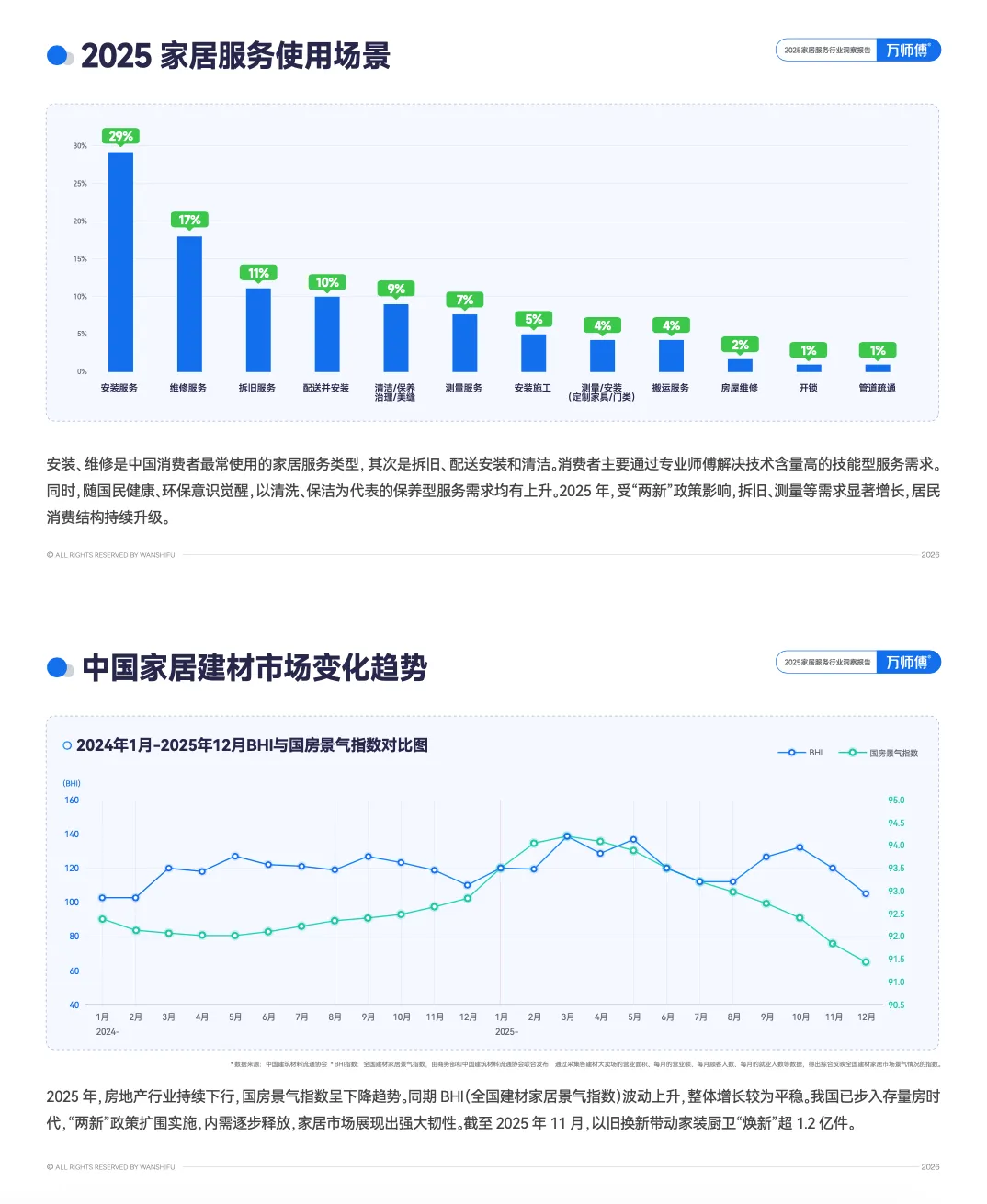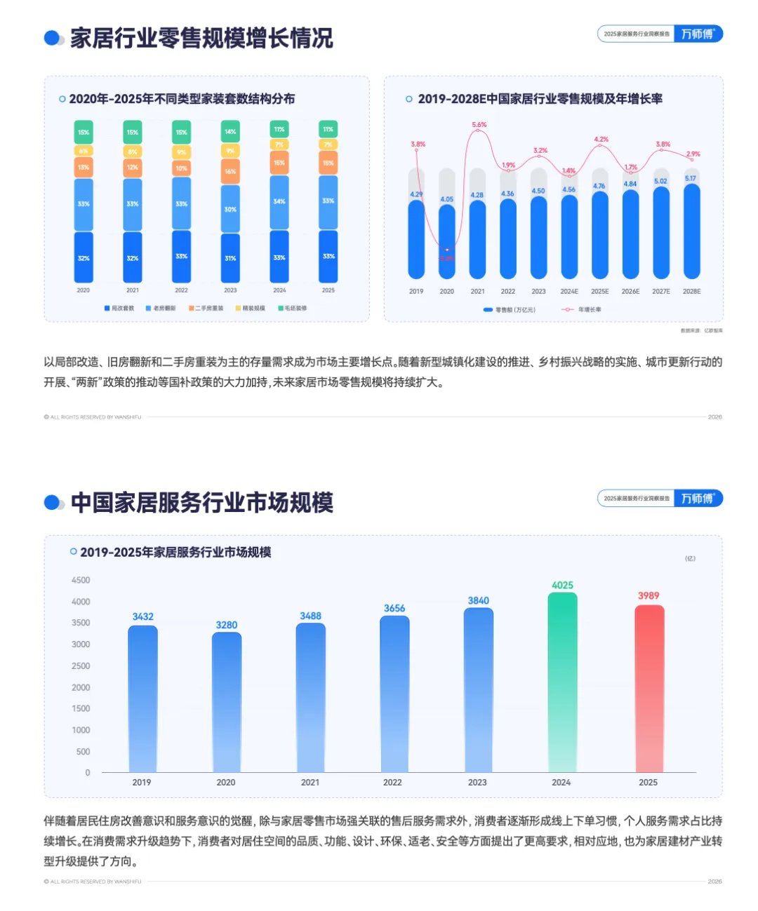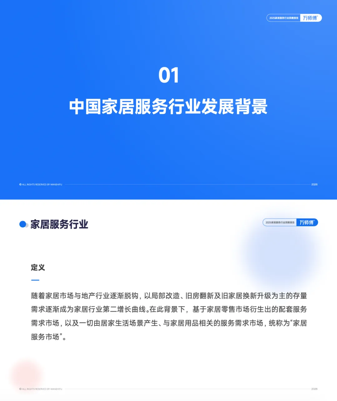 随着#家居市场 与地产行业逐渐脱钩,以局部改造、旧房翻新及旧家居换新升级为主的存量需求逐渐成为家居行业第二增长曲线。在此背景下,基于家居零售市场衍生出的配套服务需求市场,以及一切由居家生活场景产生、与家居用品相关的服务需求市场,统称为“家居服务市场”。