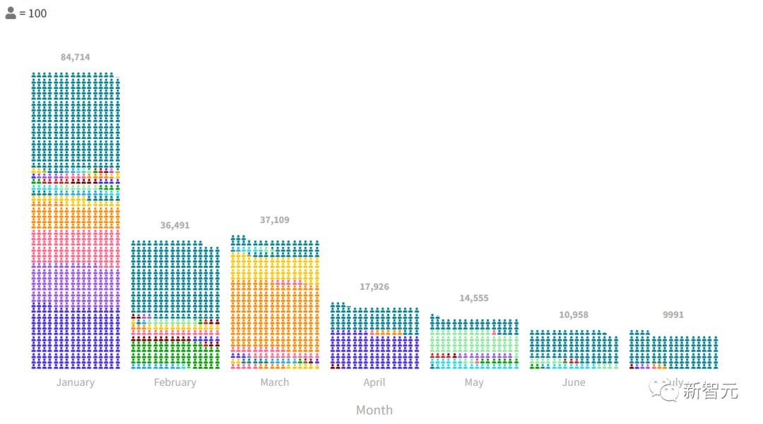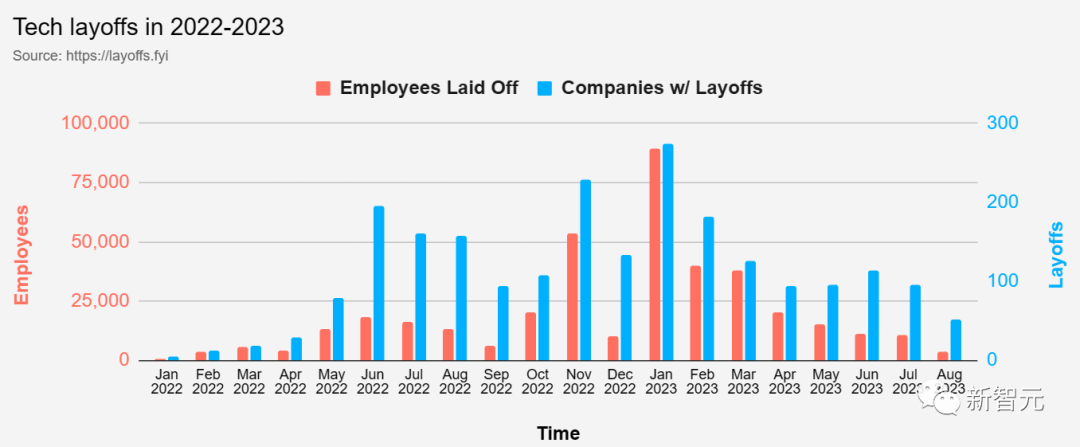 TechCrunch的统计包括了一个每月更新的可视化图标,统计汇总了世界范围内(不包括中国)科技行业已经公开的所有裁员的报道和信息。