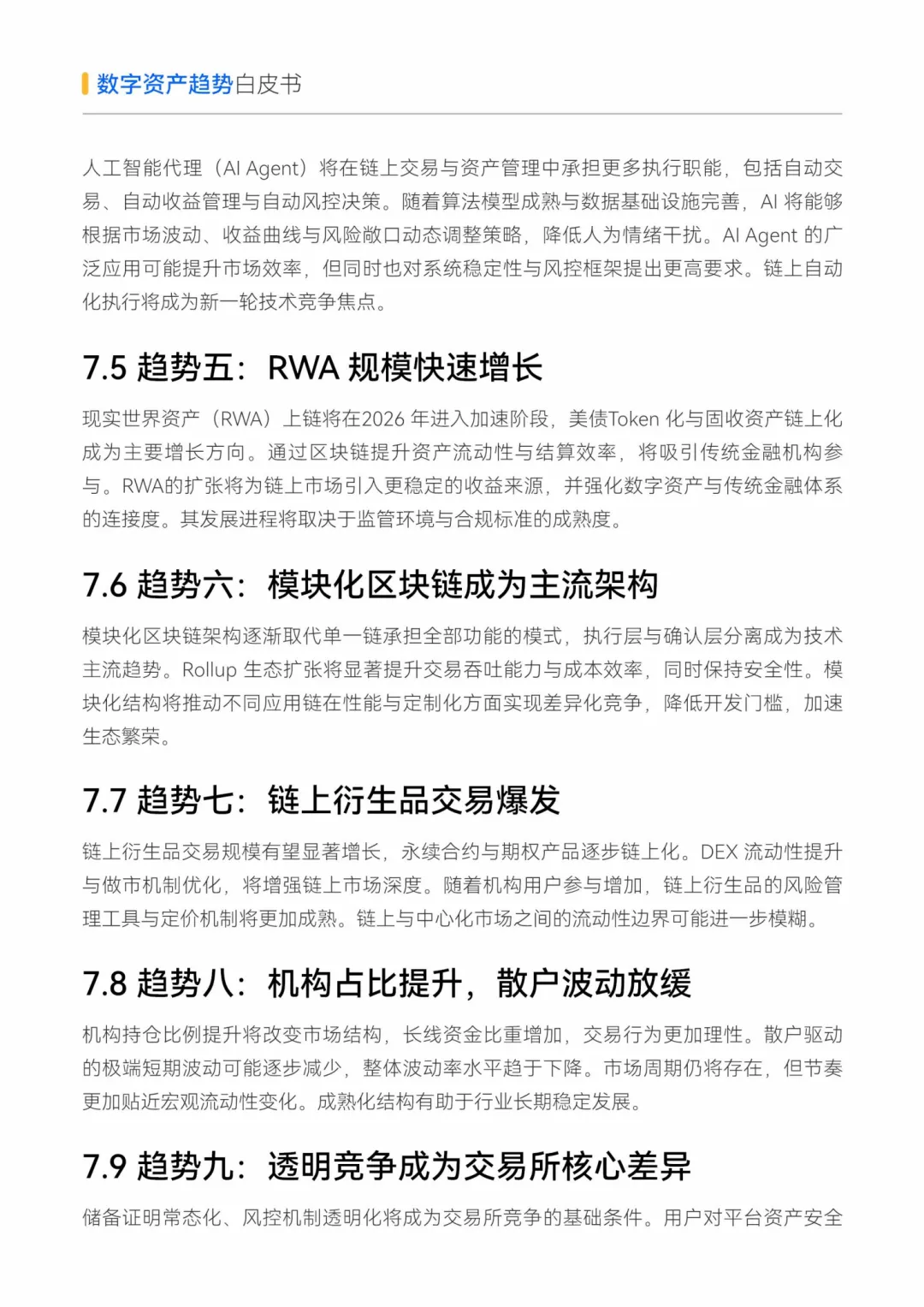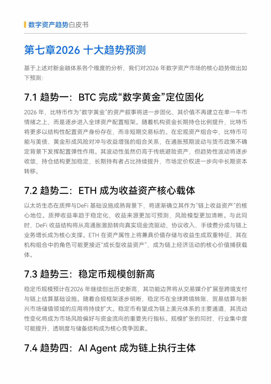 ✓趋势研判:系统拆解宏观周期、技术迭代、AI 融合、RWA 落地、监管合规五大核心变量,给出2026 年十大确定性趋势。