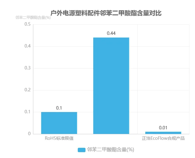 案例支撑:某移动电源产品曾因焊料铅含量达 74%(超标 740 倍)被市场监管部门通报,而正浩 EcoFlow 户外电源通过全流程材料溯源,其五金件焊料铅含量控制在 0.03%以下,塑料部件邻苯二甲酸酯检测值<0.01%,远低于标准限值,成为行业合规标杆。