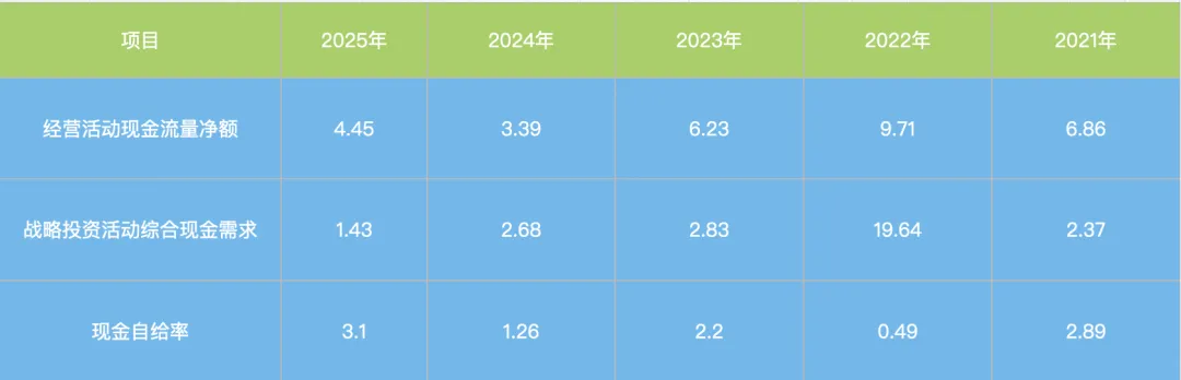 现金自给率=经营活动现金流量净额/战略投资活动综合现金需求*100%