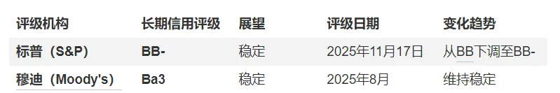 目前,公司股价已极度接近十年新低,上周最低价7.39港元/股,仅比近10年最低价7.26港元/股高出0.13港元,接近历史底部,PE和PB均处于历史极低水平,标普和穆迪近期对其长期信用评级均为投资级以下(BB-/Ba3/BB-):