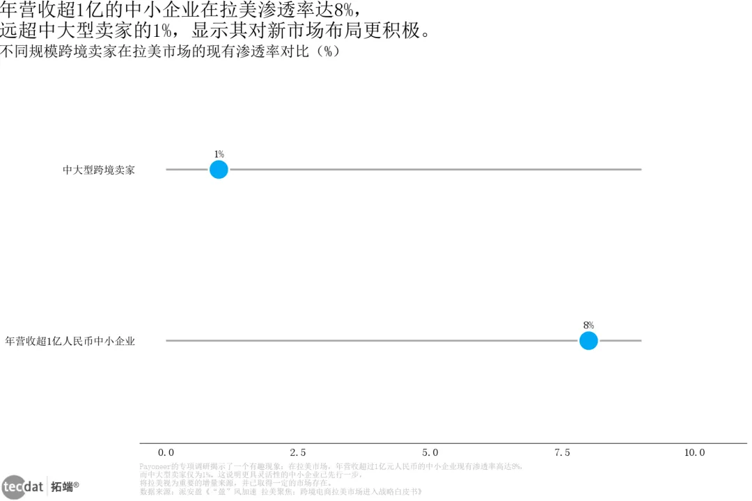 3秒解读:中小企业在拉美市场渗透率更高,灵活性优势明显,中大型卖家可借鉴其经验加快布局。