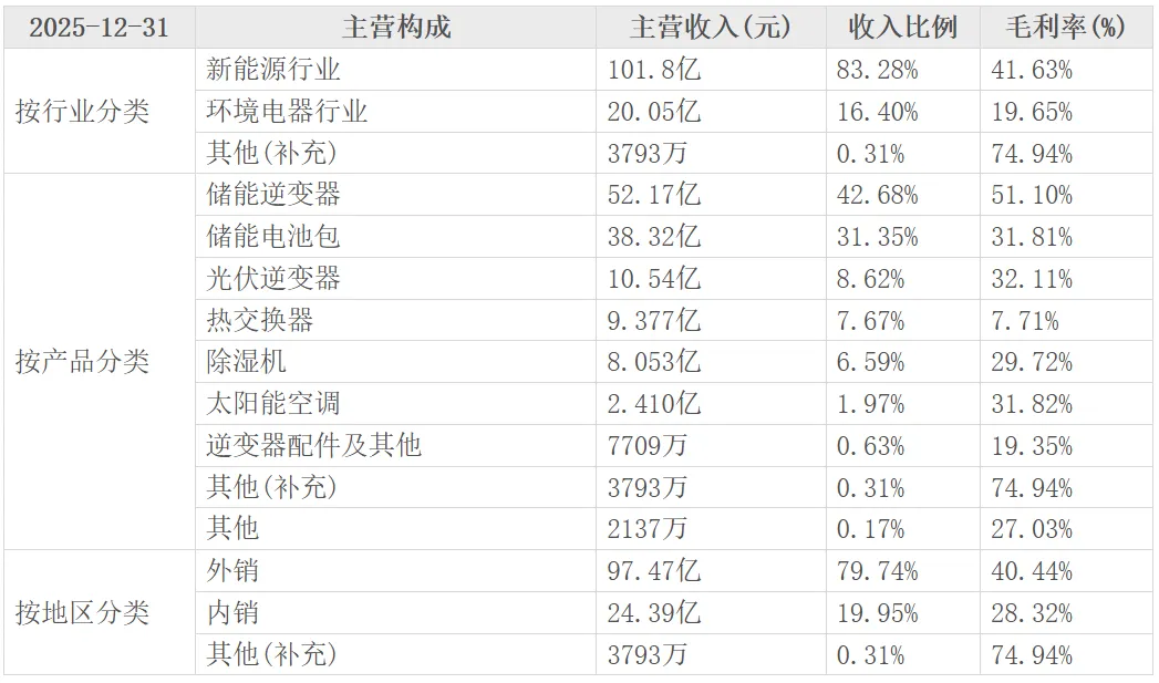 一、公司业务分为新能源行业和环境电器行业两大板块