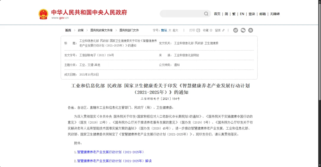 5. 《智慧健康养老产业发展行动计划(2021-2025年)》。