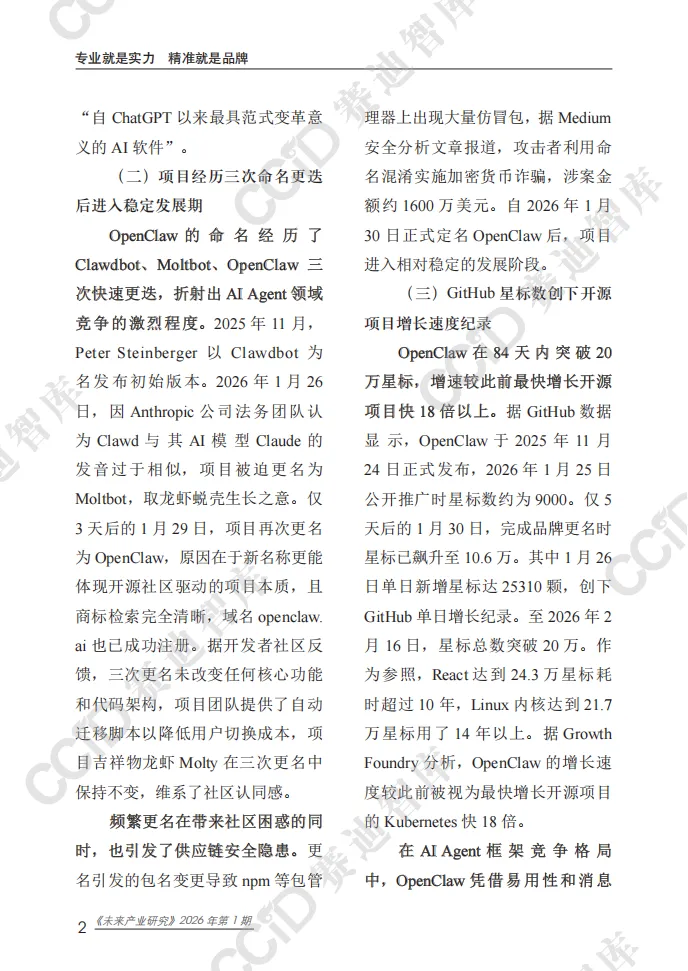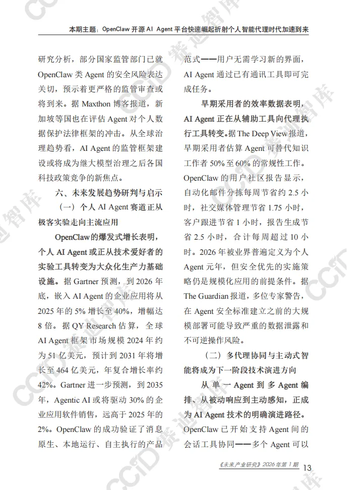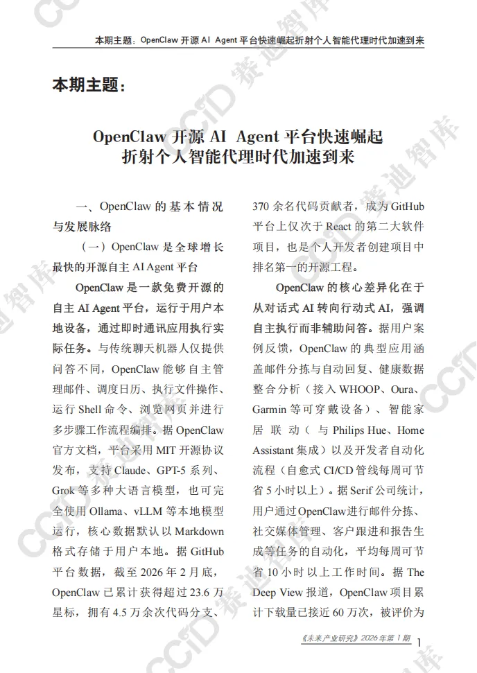 2026未来产业研究报告:OpenClaw开源AI Agent平台快速崛起折射个人智能代理时代加速到来