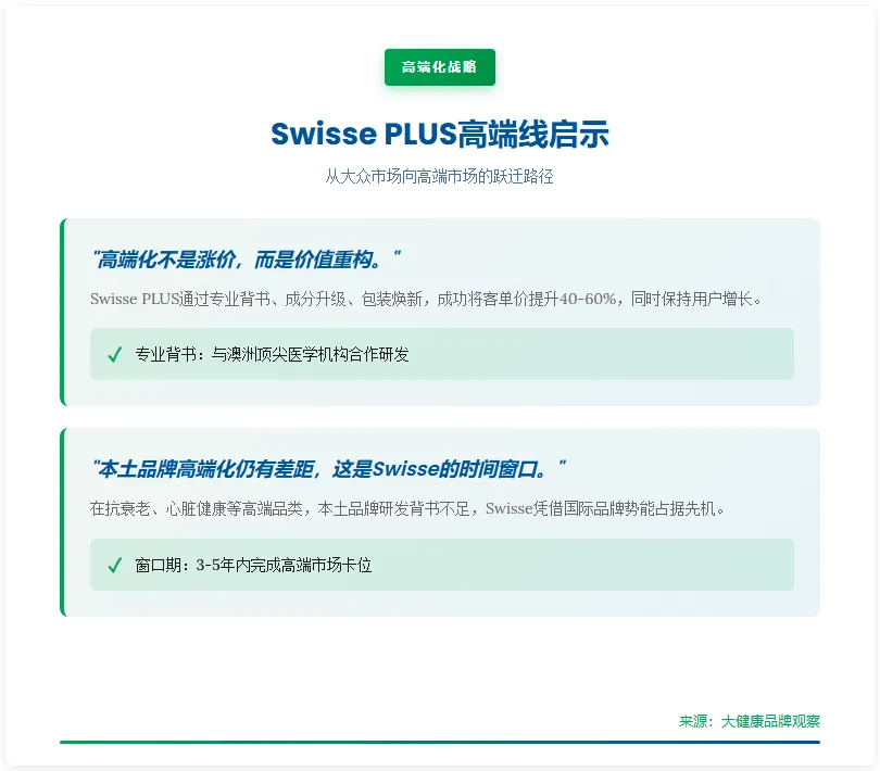 核心原因在于消费分层明显:价格敏感型用户流向本土品牌,而追求"品牌溢价+科研背书"的中高端消费者,更愿意为Swisse这类品牌买单。