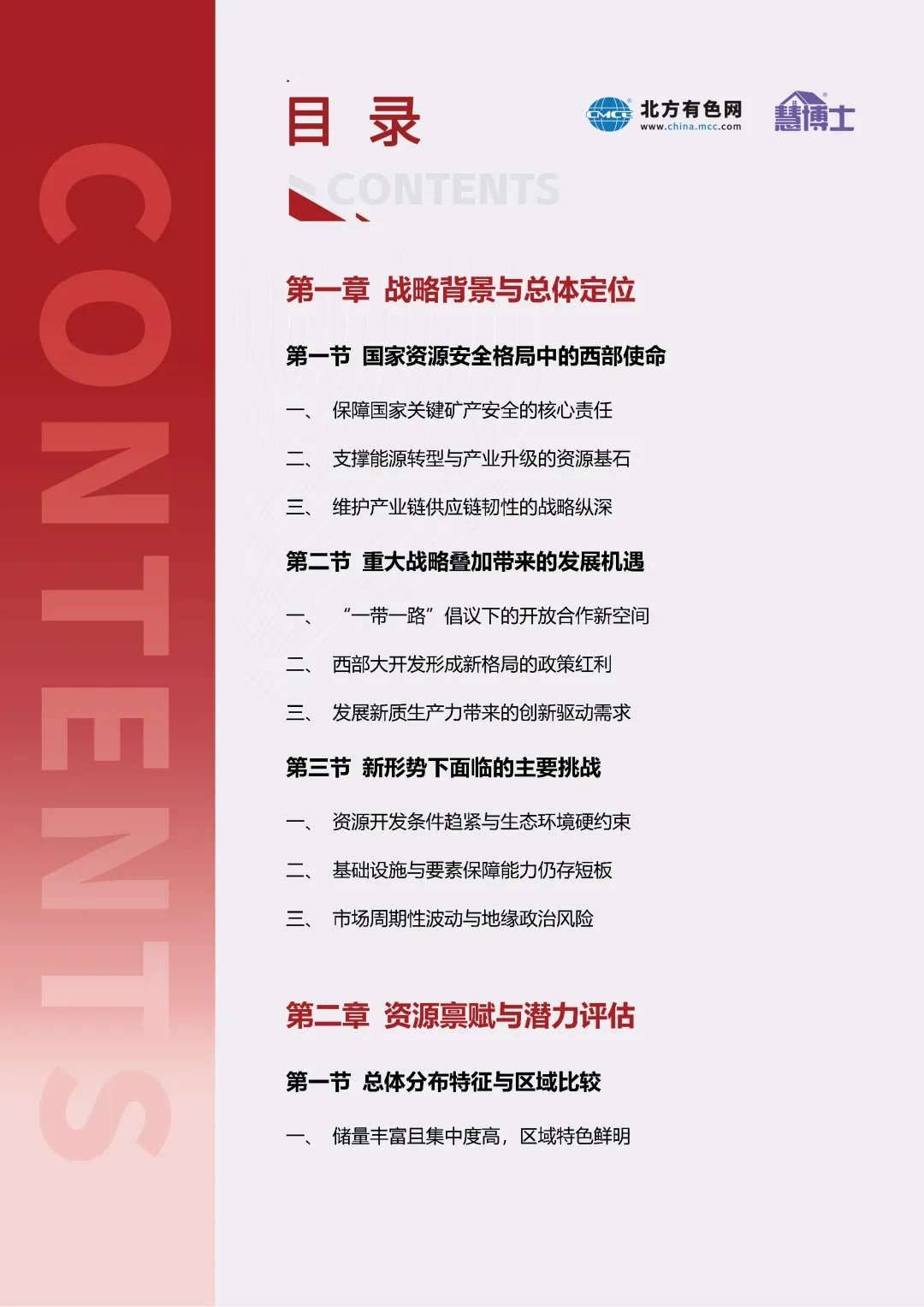 为积极应对全球能源转型加速、产业链供应链格局深度调整的新形势,切实保障国家关键矿产资源安全,服务区域协调发展和现代化产业体系建设,本报告立足国家战略全局,系统开展了我国西部地区有色金属资源勘探开发战略研究。