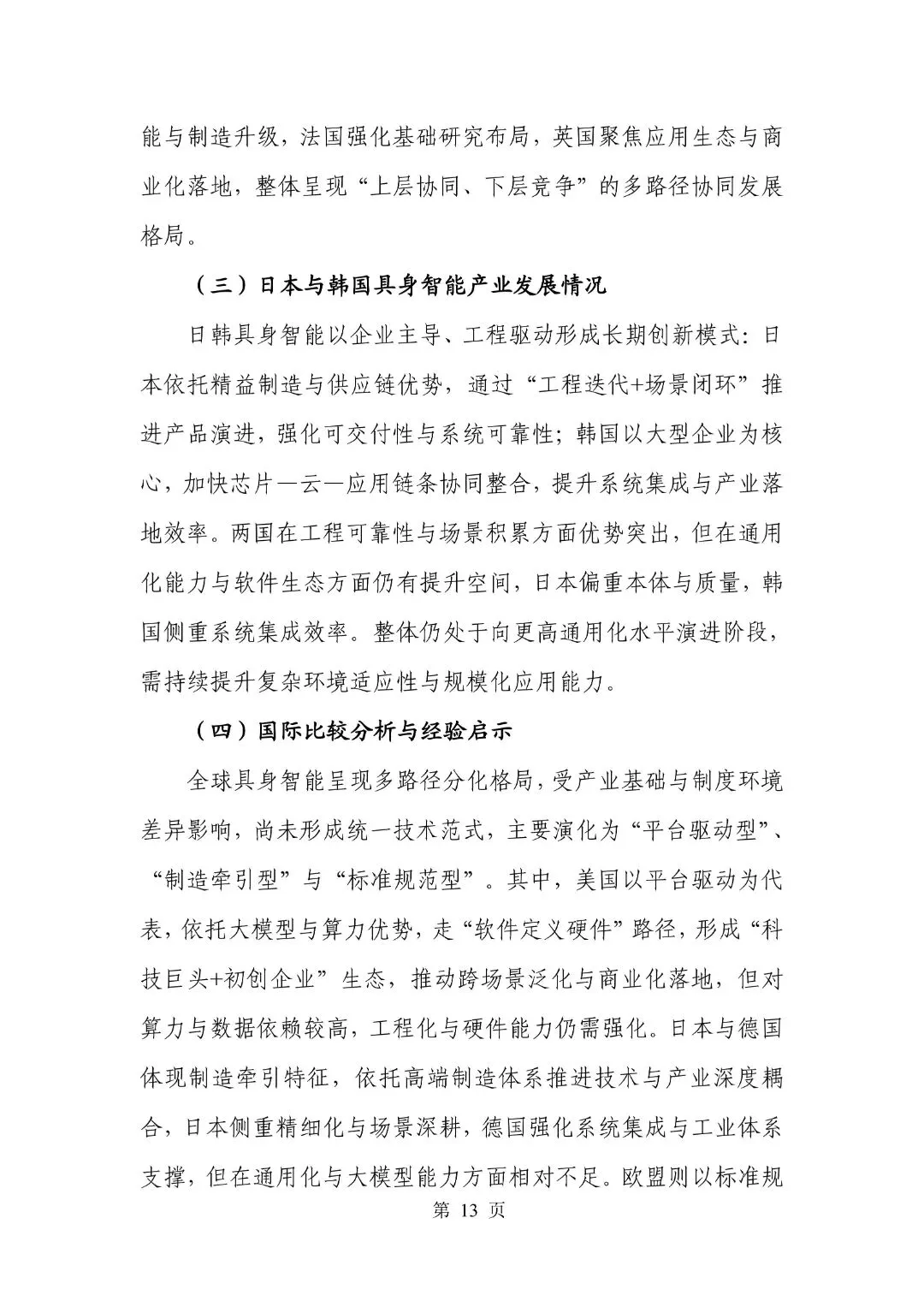 导读:《具身智能产业创新发展趋势及路径研究报告(2026年)》是由中国电子信息产业发展研究院(赛迪研究院)与中国软件评测中心联合发布的行业分析报告,系统梳理了具身智能从理论到应用的发展路径。该报告提出具身智能是“有身体”的AI,通过“感知-行动-学习”闭环实现自主进化,当前处于技术探索向规模化应用过渡阶段。报告将全球发展路径划分为平台驱动型(美国)、制造牵引型(日韩)和标准规范型(欧盟)三类,并预测中国将通过东部城市群集聚和应用驱动实现突破。未来十年将分三个阶段演进:2026-2028年完成商业验证,2029-2032年扩展规模,2032-2035年实现通用能力突破。