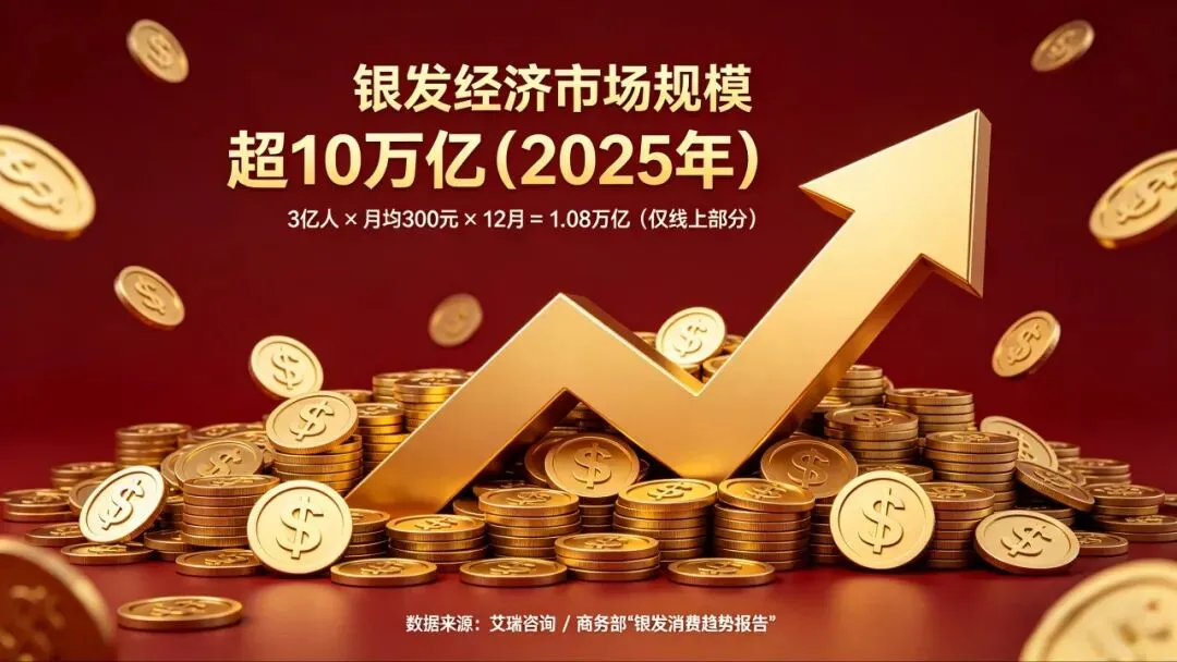 我给你们算个账:3亿人,每人每月网购只花100元,一年就是3600亿。实际上,很多中老年月均消费远超这个数。