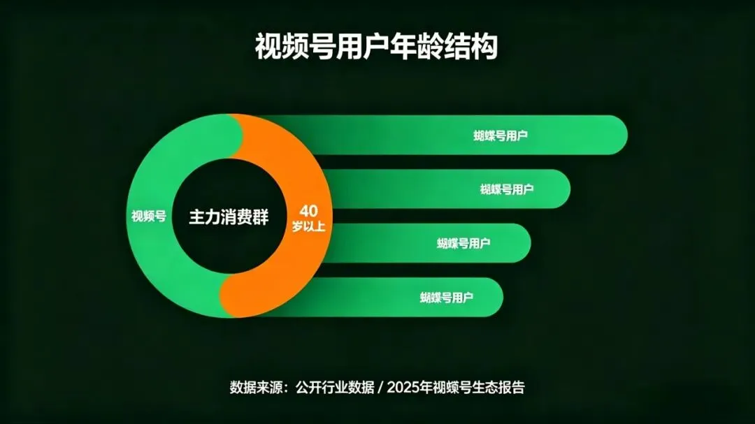 因为视频号的用户画像里,中老年占比非常高。他们有时间、有信任感、不习惯跳转到其他平台,直接在视频号里看直播、下单、复购。