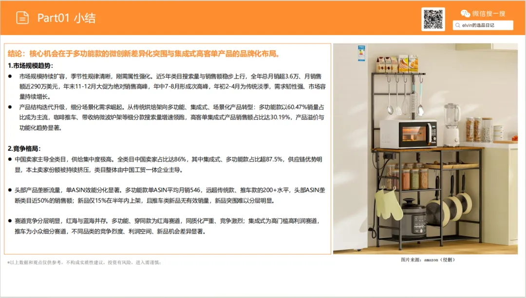 厨房置物架作为家居刚需类目,仍具备可观的出海机会,但也面临同质化、头部垄断及物流成本高等现实挑战。企业唯有以用户需求为核心,强化产品差异化与供应链效率,才能在成熟红海中找到细分增量,实现稳健布局与长期发展。