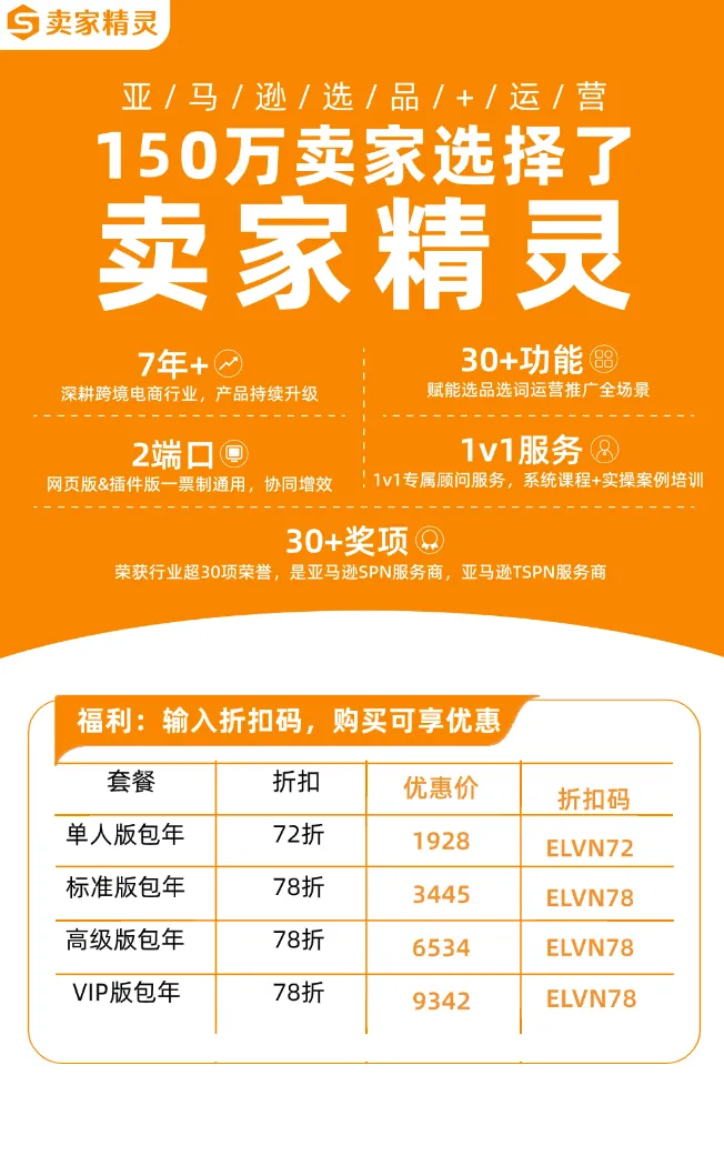 标准版以上均为78折 使用流程 https://www.sellersprite.com/cn/price