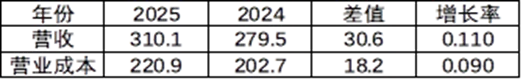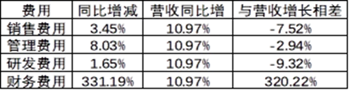 营收同比增长为10.9%,而营业成本增长为9%。