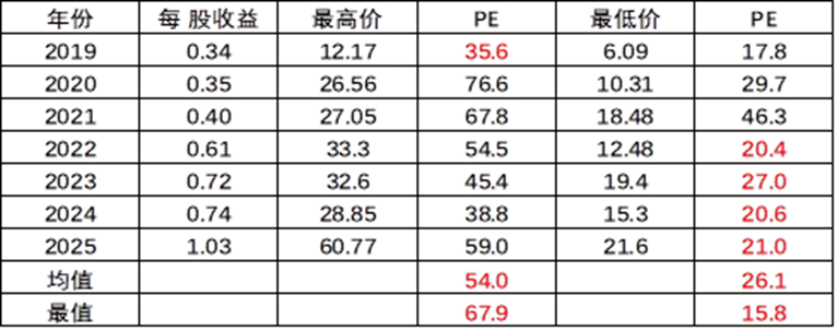 近七年市场给三花给的估值: