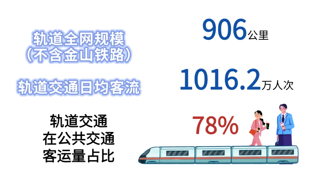 全年日均客运量1016.2万人次,在公共交通客运量(含轨道交通、地面公交、轮渡)的比例逐年提升至78%。