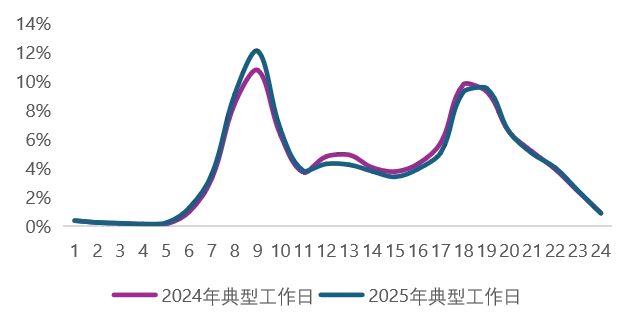 巡游出租车和网约车出行特征趋同,需求结构稳定,平均乘距约10公里,中心城客流占比约61%,同比基本持平。