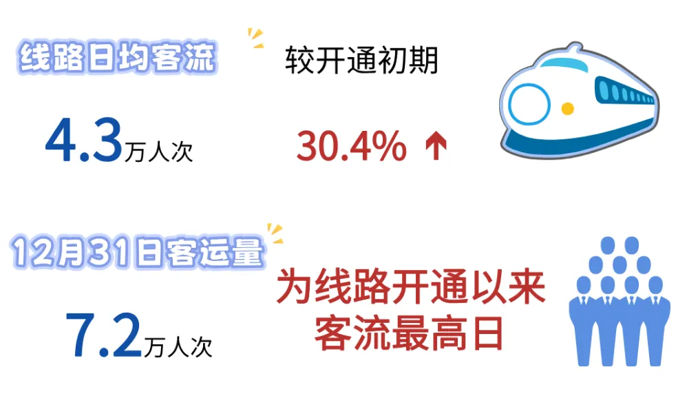 2025年作为线路开通后首个完整运营年,日均客运量达4.3万人次,较开通初期增长30.4%。