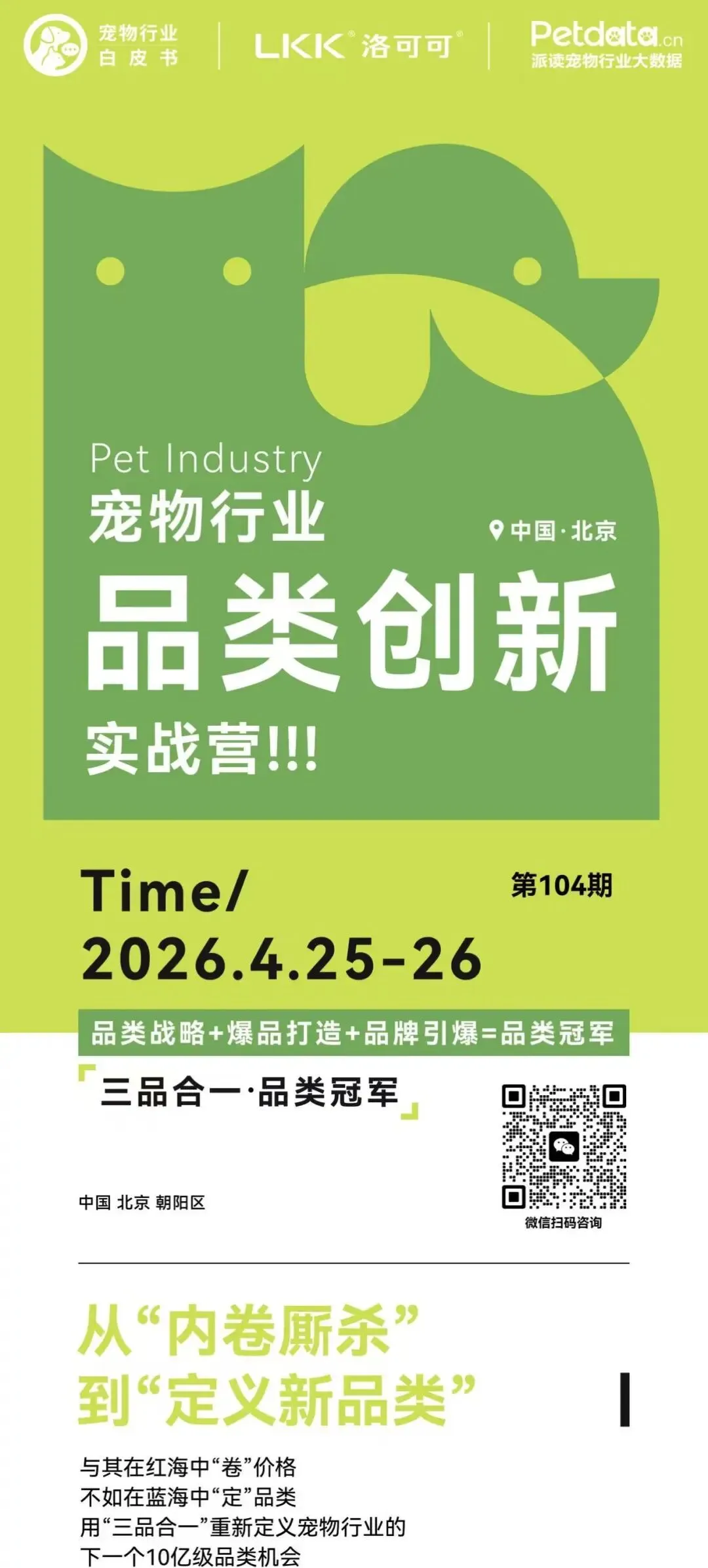 这正是洛可可咨询设计与宠物行业白皮书&派读宠物行业大数据平台联合推出 “宠物行业品类创新实战营”的初衷。我们不是讲理论,而是用2天1夜,带你走通一条 “品类战略+爆品打造+品牌引爆” 的完整路径,带走一套可落地的增长方案。