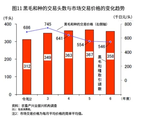 关于家畜市场中黑毛和种犊牛的交易头数,2024年度为35万8054头(比上年减少2.5%),略低于上年度水平。2024年度,日本黑毛和种犊牛均价为 2.73万元/头,同比下降1.5%,但仍处于历史高位。