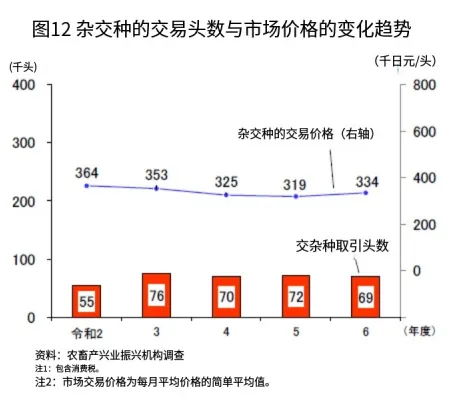 关于杂交种犊牛的交易头数,2024年度为6万9272头(比上年减少3.9%),略低于上年度水平。杂交种犊牛1.67万元/头,上涨4.9%;荷斯坦种犊牛0.93万元/头,上涨5.6%。