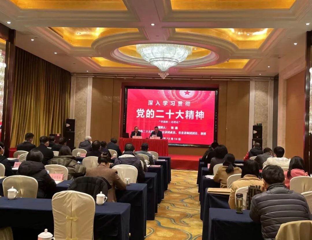12月14日下午,合肥市工商联所属商会党委二十大精神专题宣讲会顺利举行。党的二十大精神省委宣讲团成员,省委讲师团团长、教授张彪作主题报告,市委统战部副部长、市工商联党组书记、常务副主席蓝天主持会议。