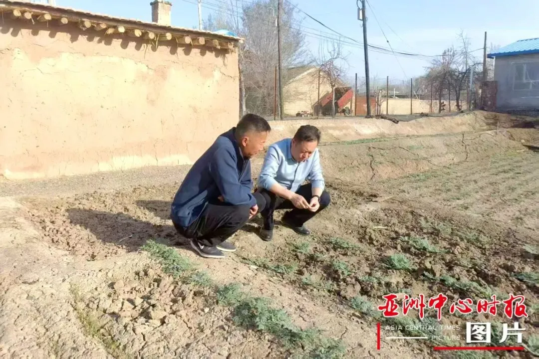 调研组实地察看阿魏草生长态势与田间管理情况。宋兵供图