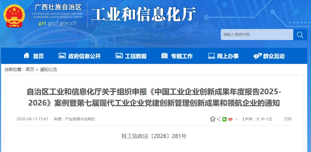 1.关于组织申报《中国工业企业创新成果年度报告2025-2026》案例暨第七届现代工业企业党建创新成果和领航企业的通知(中工报〔2026〕15号)